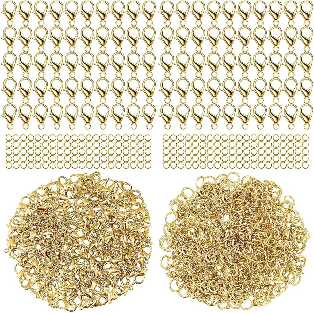 カニカン 12mm 約100個 丸カン 5mm 約200個入 セット メガネチェーン マスクチェーン グラスチェーン ネックレス ブレスレット アンクレット 金具 留め具 アクセサリー ストラップ パーツ ハンドメイド DIY材料 (12mm, ゴールド)